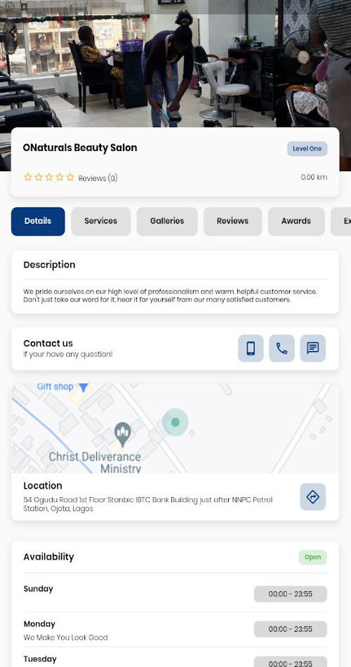 Major Hair Salons, Beauty Salons, Barbershops, Make Up, Eyebrows & Lashes, Massage Centers, Nail Salons, Spa, Tattoo, Waxing Salons, Personal Trainers, Tanning Studios and Gym & Fitness in Nigeria